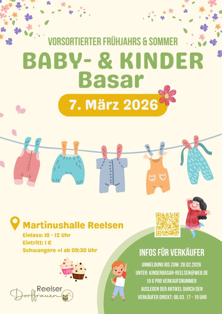 Anmeldung bis zum 28.02.2026 unter dieser Mailadresse: kinderbasar-reelsen@web.de